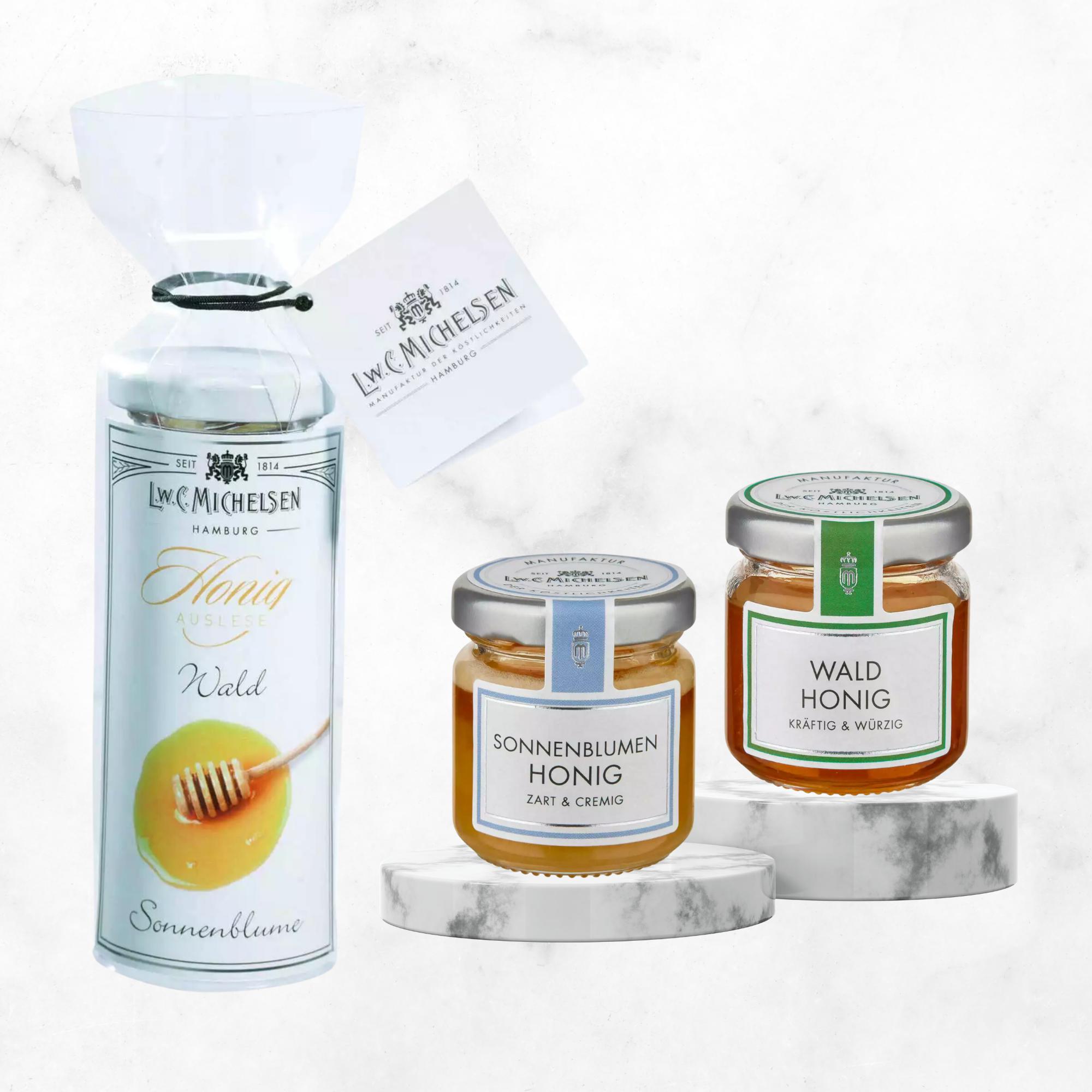 - Enthält zwei Gläser mit aromatischem Waldhonig und mildem Sonnenblumenhonig