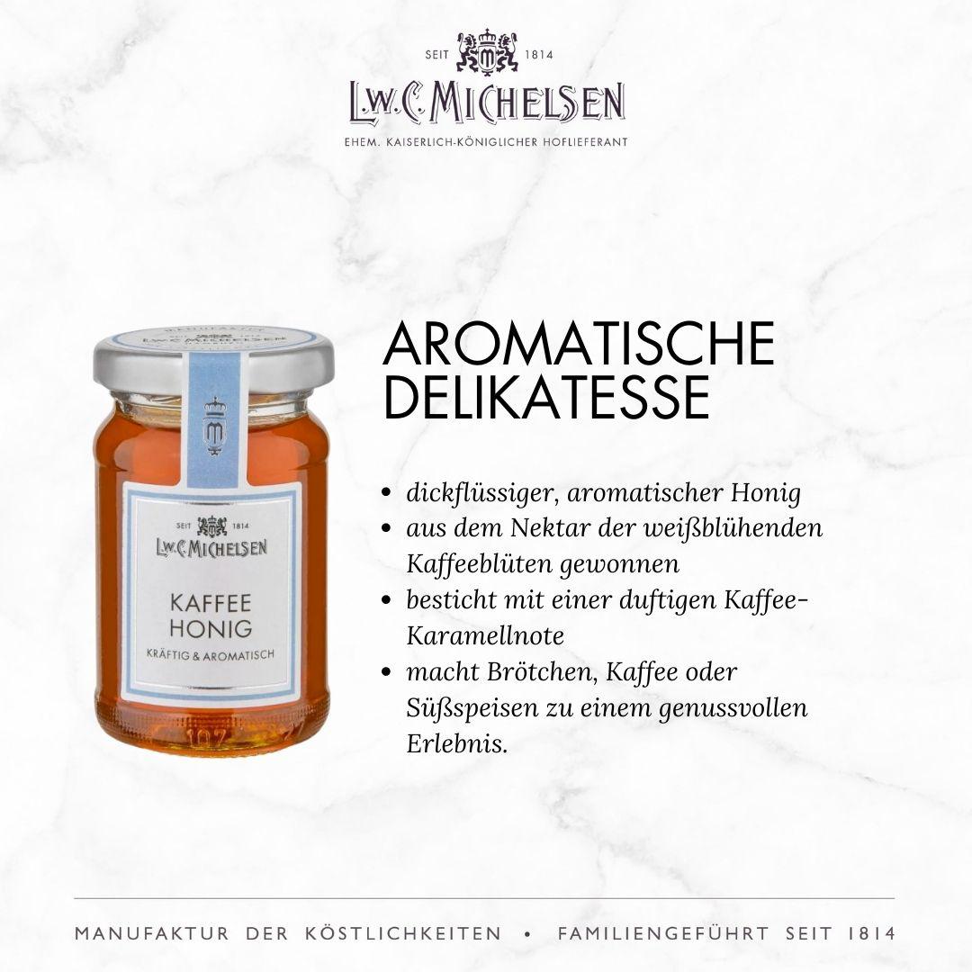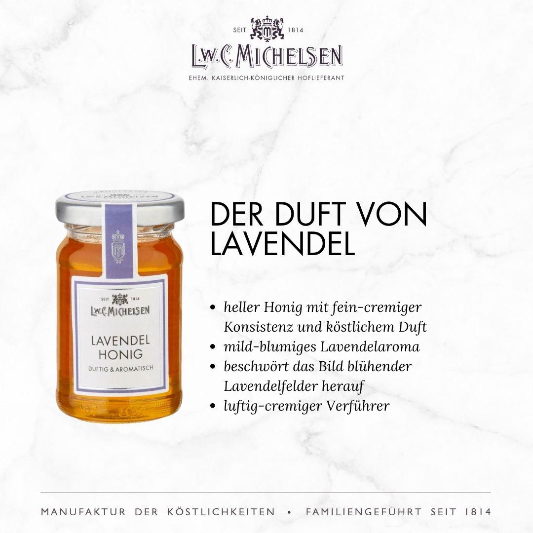 Mit einem breiten Sortiment an exquisiten Feinkostprodukten, Marmeladen, Honigen, Likören und Delikatessen aus aller Welt begeistert L.W.C. Michelsen Feinschmecker, Gourmets und Genießer gleichermaßen. Die Marke steht für traditionelle Rezepturen, hochwertige Zutaten und innovative Geschmackskompositionen, die immer wieder überraschen und Freude bereiten. Auch heute noch werden viele Produkte nach originalen Rezepturen hergestellt – sorgfältig und mit Liebe zum Detail.