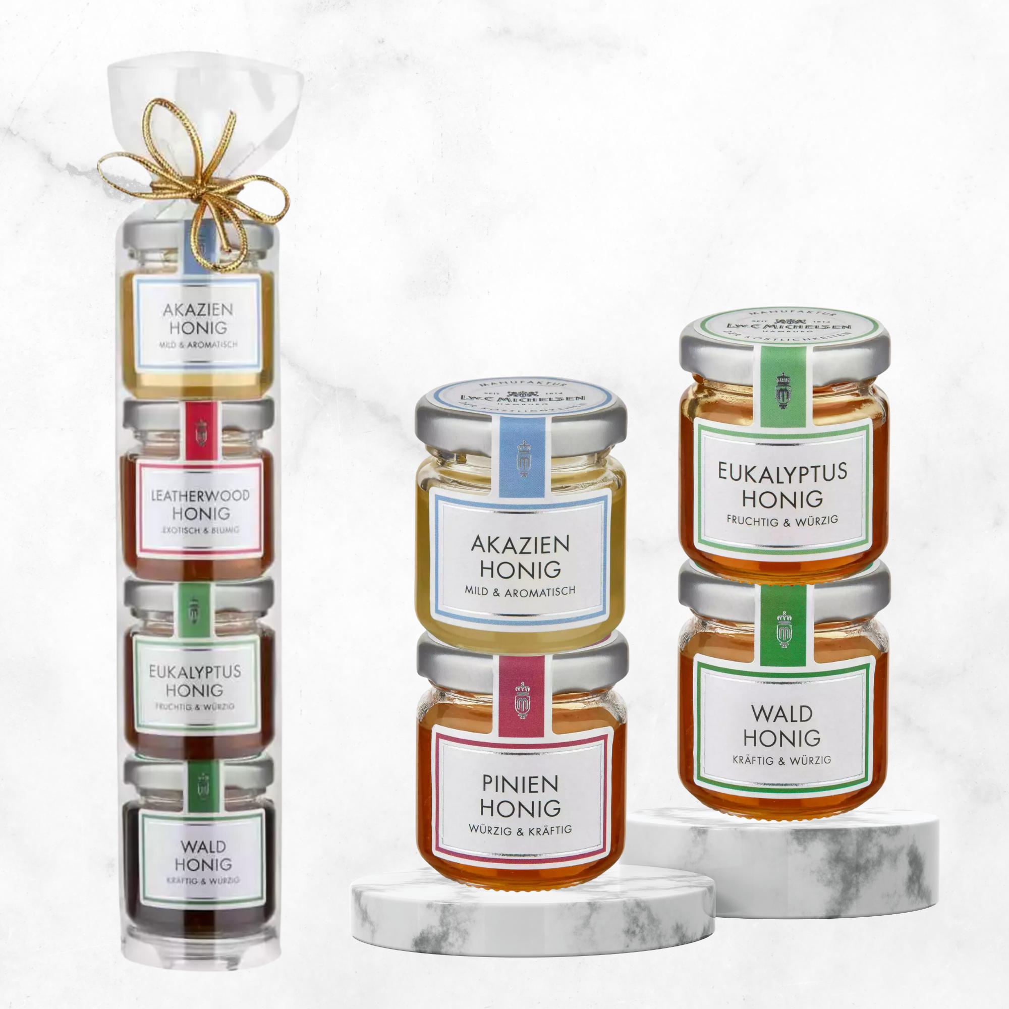 - Enthält vier 50g-Gläser mit Wald-, Akazien-, Pinien- und Eukalyptushonig