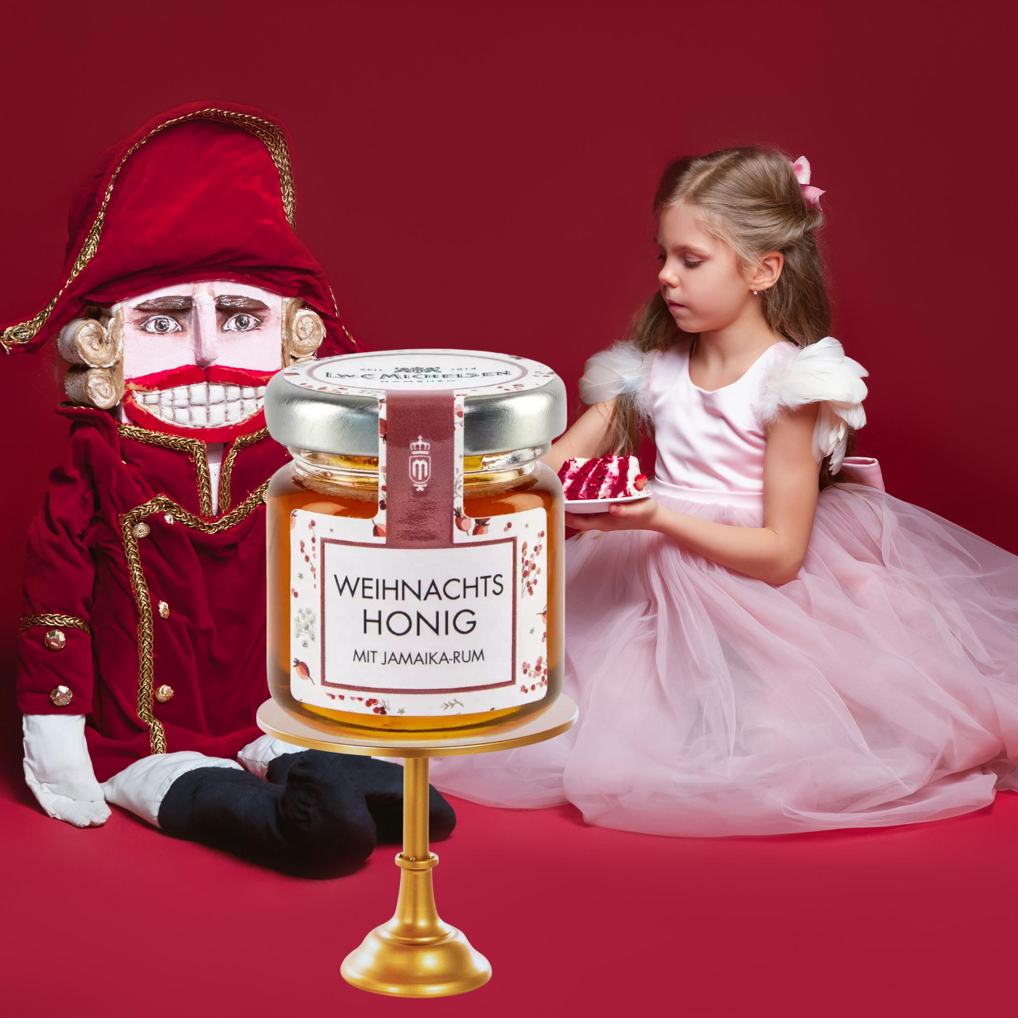 - Vier exquisite Honigzubereitungen: Honig&Rum, Honig&Zimt, Honig&Marzipan und Honig&Ingwer.