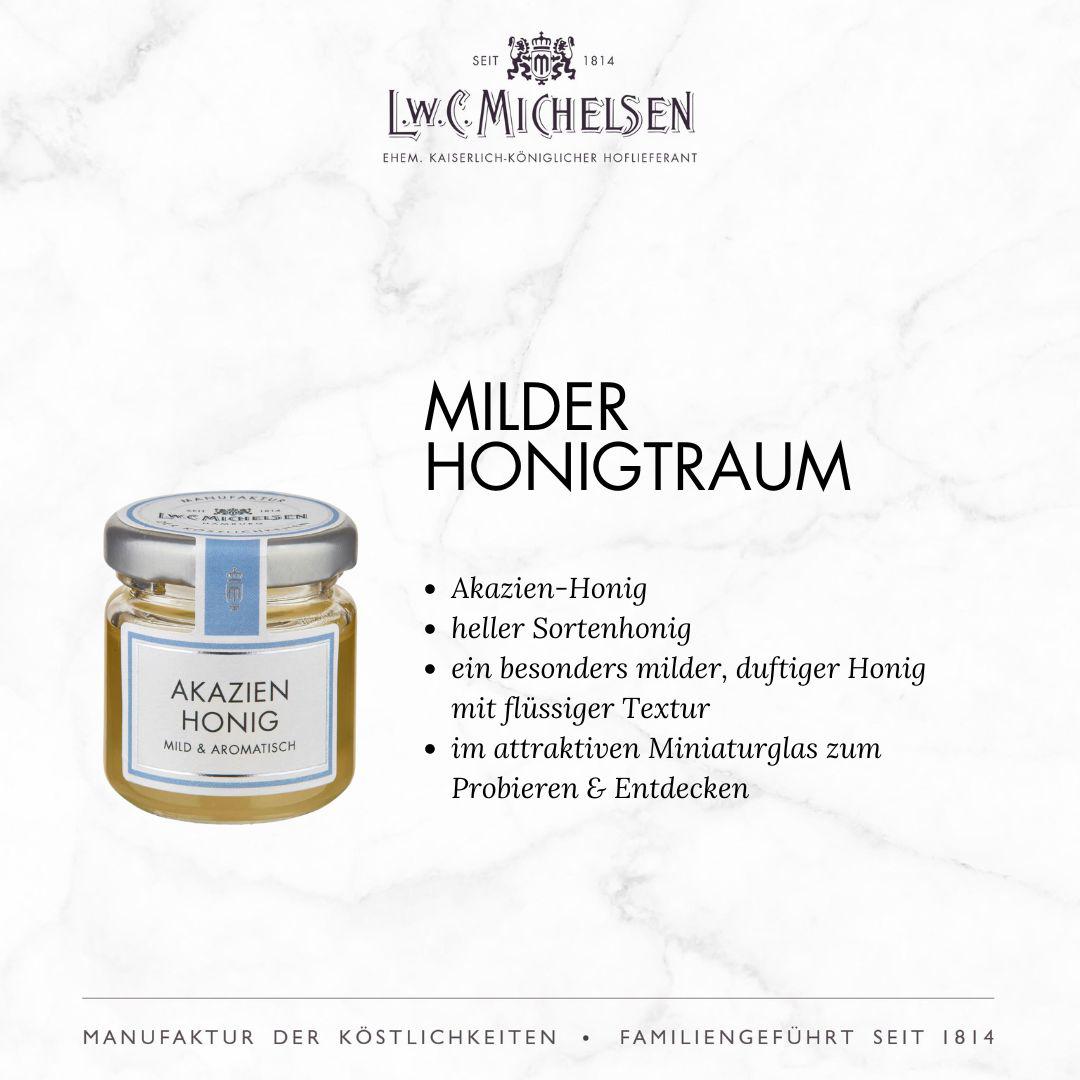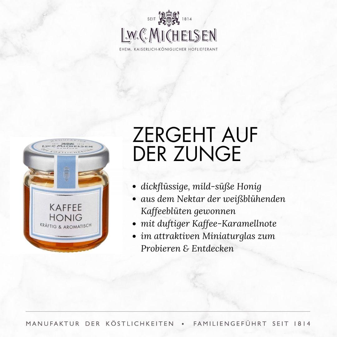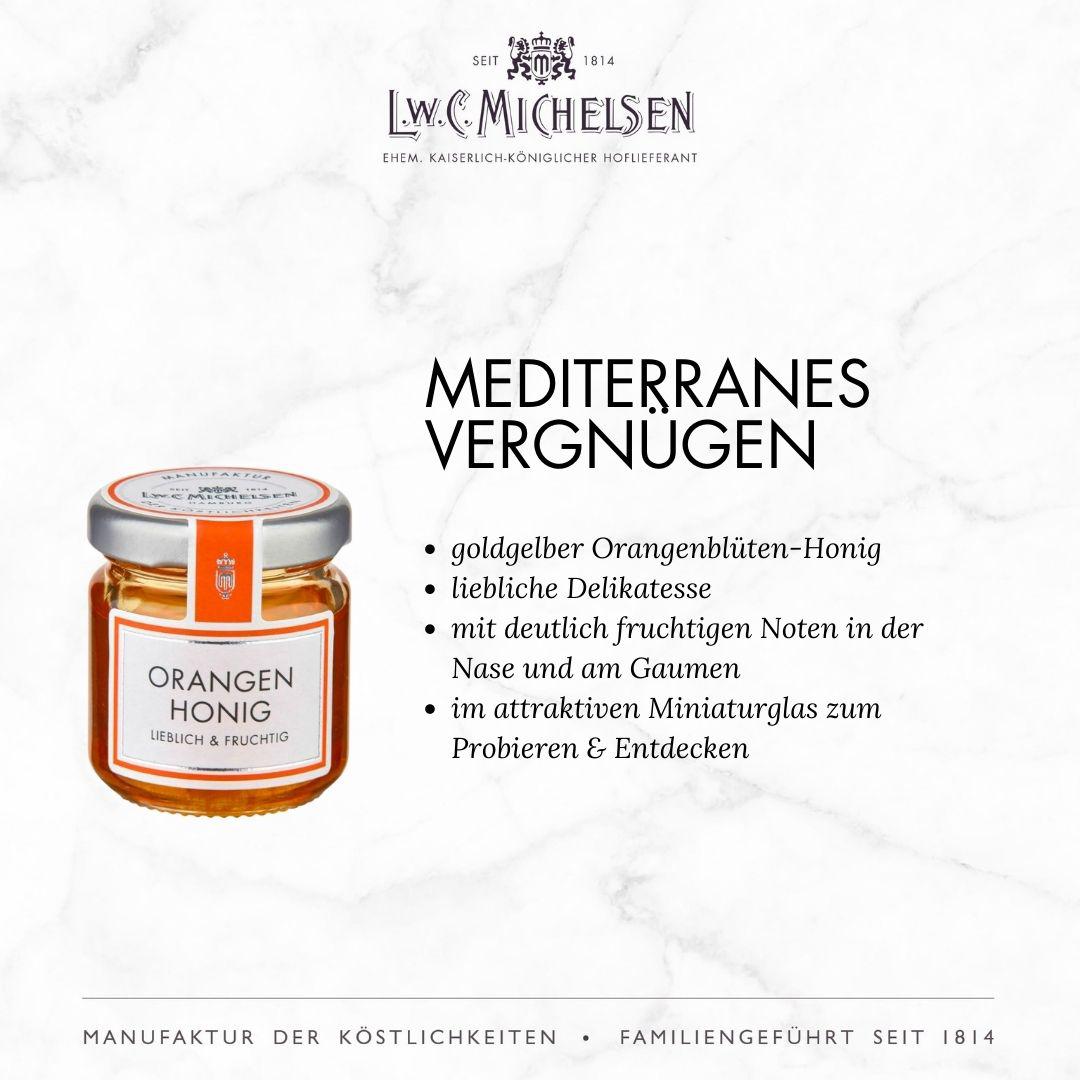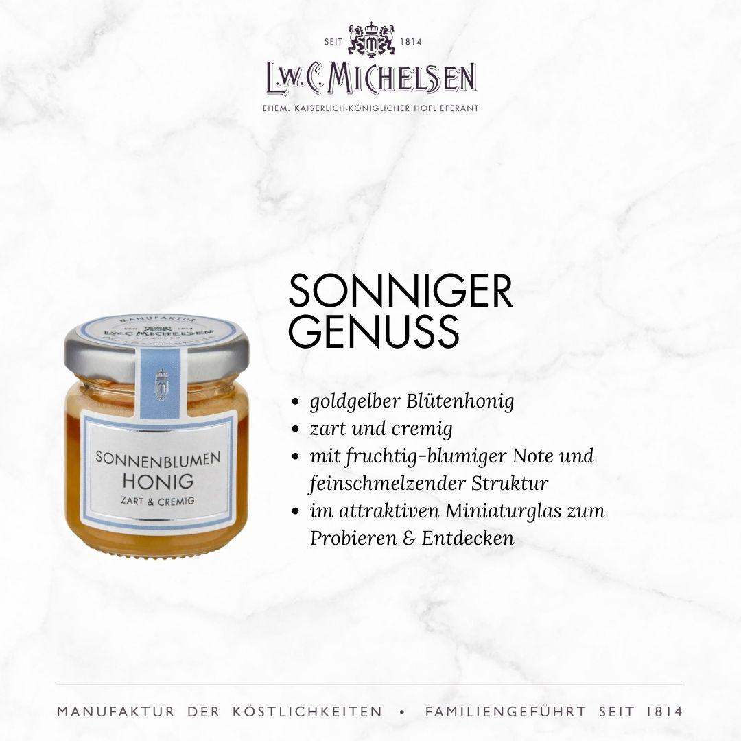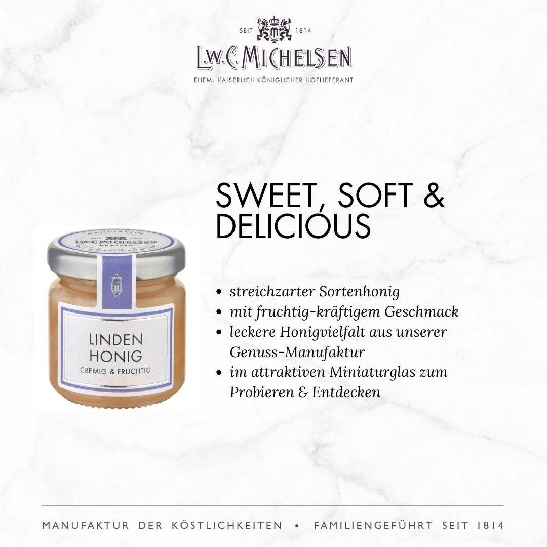 Mit einem breiten Sortiment an exquisiten Feinkostprodukten, Marmeladen, Honigen, Likören und Delikatessen aus aller Welt begeistert L.W.C. Michelsen Feinschmecker, Gourmets und Genießer gleichermaßen. Die Marke steht für traditionelle Rezepturen, hochwertige Zutaten und innovative Geschmackskompositionen, die immer wieder überraschen und Freude bereiten. Auch heute noch werden viele Produkte nach originalen Rezepturen hergestellt – sorgfältig und mit Liebe zum Detail.