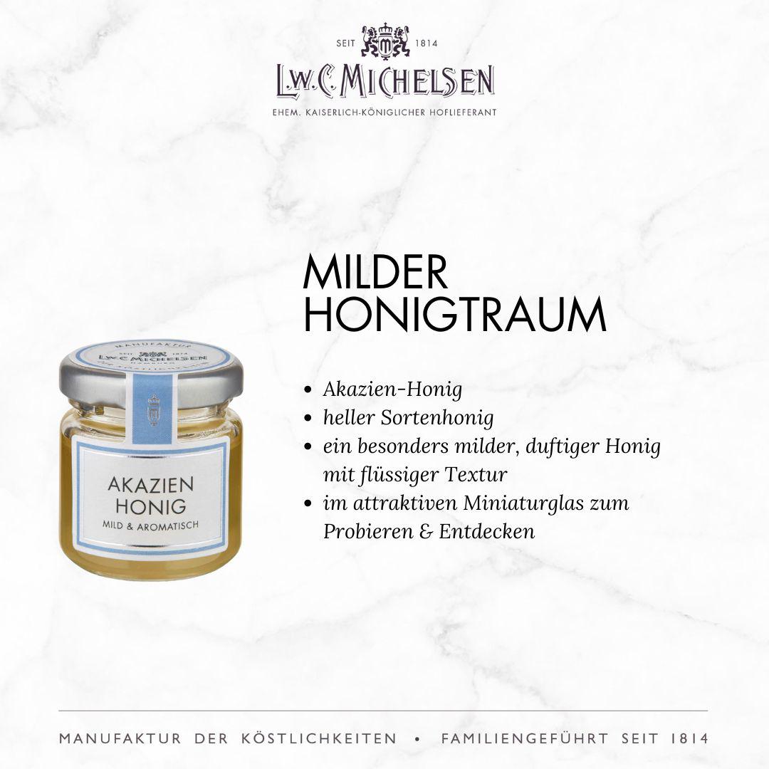 - Exklusives Honig-Probier-Set mit sechs verschiedenen Honigspezialitäten im Miniaturglas