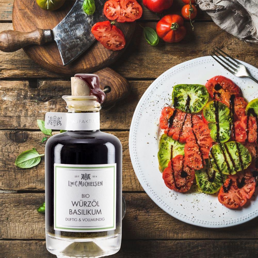 Hergestellt aus kaltgepresstem Bio-Rapsöl und erntefrischem Basilikum, ist es reich an ungesättigten Fettsäuren und passt perfekt zu einer ausgewogenen Ernährung. Vegan, laktose- und glutenfrei, erfüllt es vielfältige Ernährungsbedürfnisse. Seit 1814 steht unser Unternehmen für hochwertige Feinkost und Tradition. Erleben Sie den Geschmack von über 200 Jahren hanseatischer Feinkostkultur in jedem Tropfen.