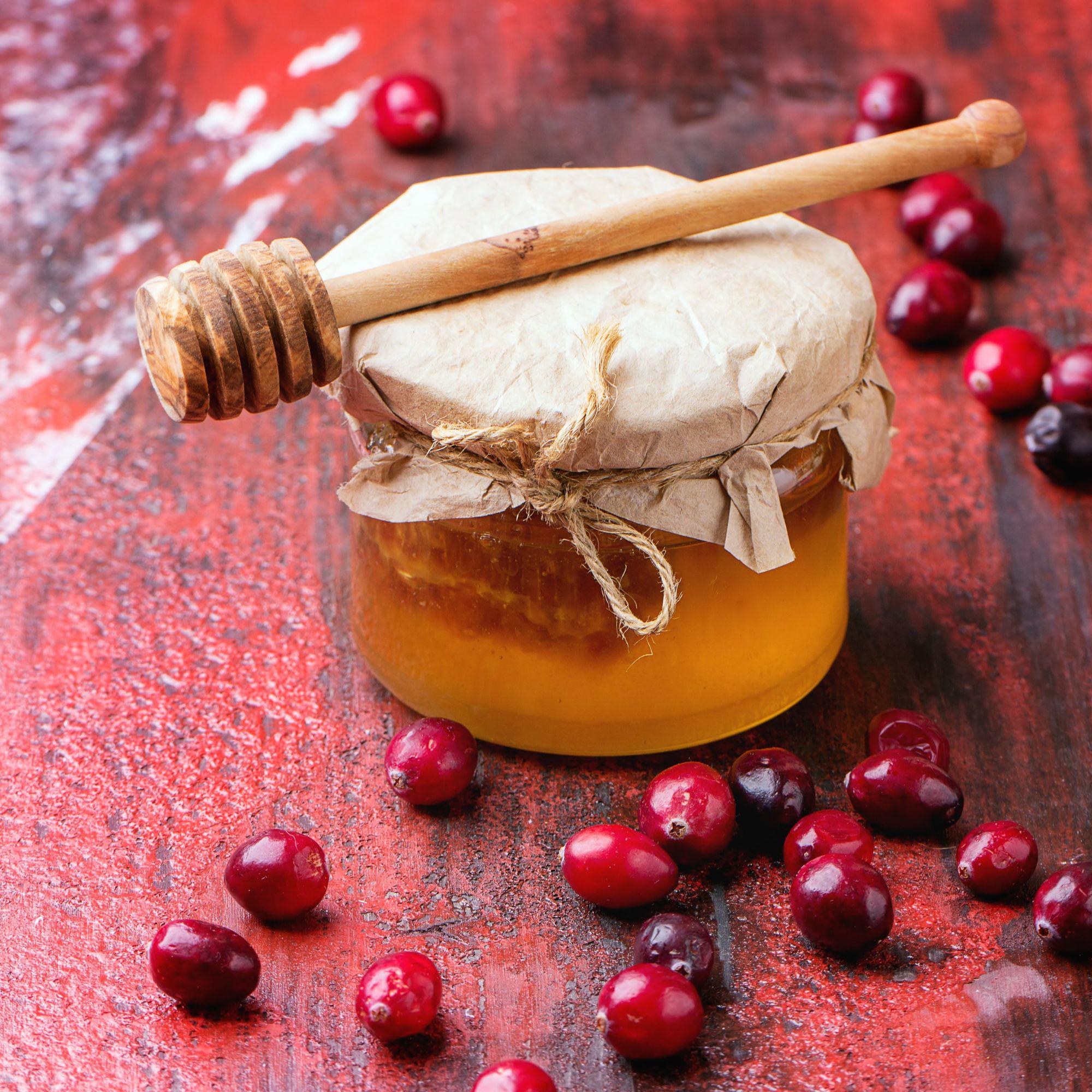 - Cremiger Honig mit gefriergetrockneten Cranberries, perfekt für den Frühstückstisch