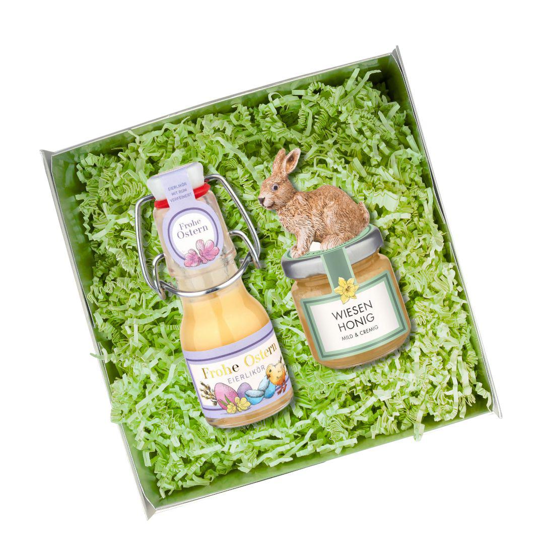 - Enthält Eierlikör mit Jamaika-Rum & Oster-Honig mit Hasen-Motiv