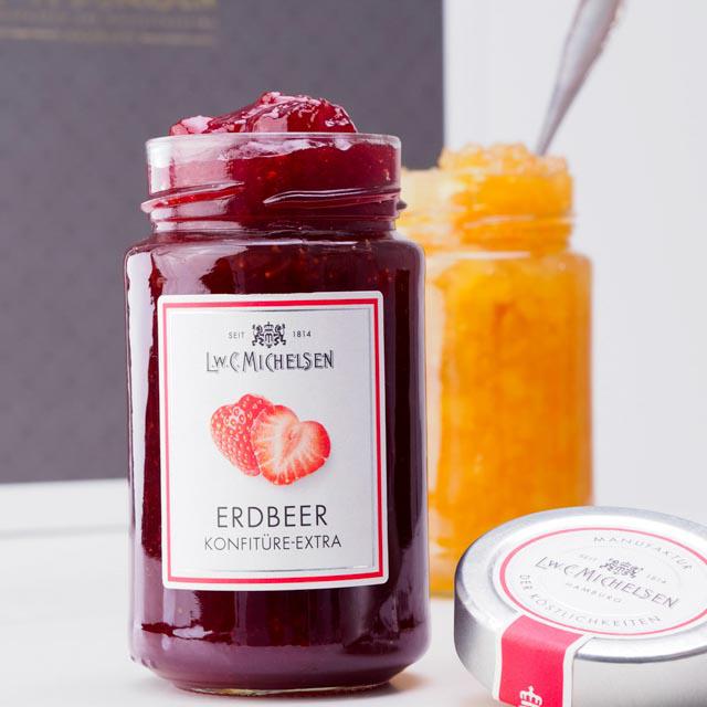 Erleben Sie den besonderen Genuss unserer Erdbeer Konfitüre -Extra- und lassen Sie sich von der Qualität und dem Geschmack überzeugen, die seit über zwei Jahrhunderten geschätzt werden.