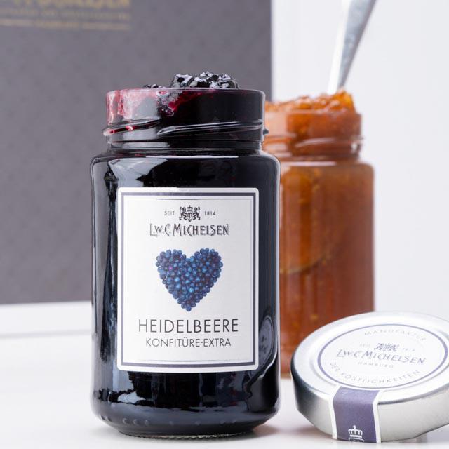 | Bezeichnung des Lebensmittels | Heidelbeer-Konfitüre Extra |