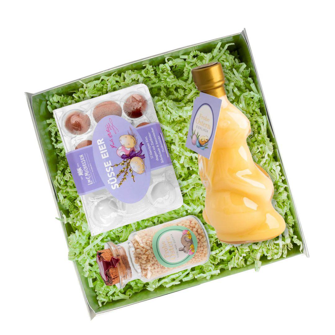 - Enthält köstlichen Eierlikör, dragierte Marzipan-Eier & Knusperzucker