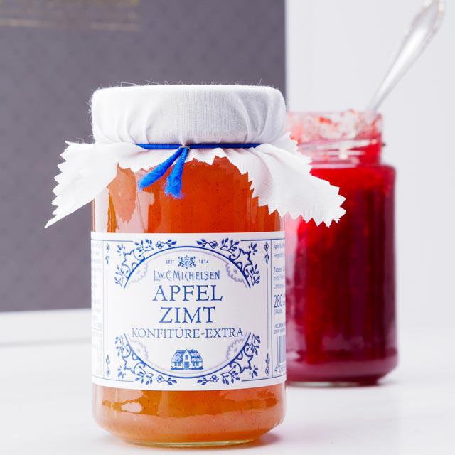 - Fruchtige Apfel & Zimt-Konfitüre Extra mit knackigen Apfelstückchen und einer feinen Zimtnote.