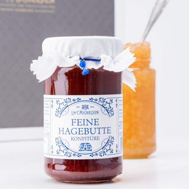 Überzeugen Sie sich selbst von der einzigartigen Qualität und dem unverwechselbaren Geschmack unserer Landhaus Hagebutten Konfitüre. Ein Genuss, der die Tradition und das Handwerk von L.W.C. Michelsen widerspiegelt.