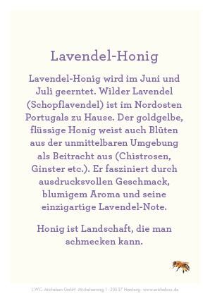 | Bezeichnung des Lebensmittels | Lavendel-Honig |