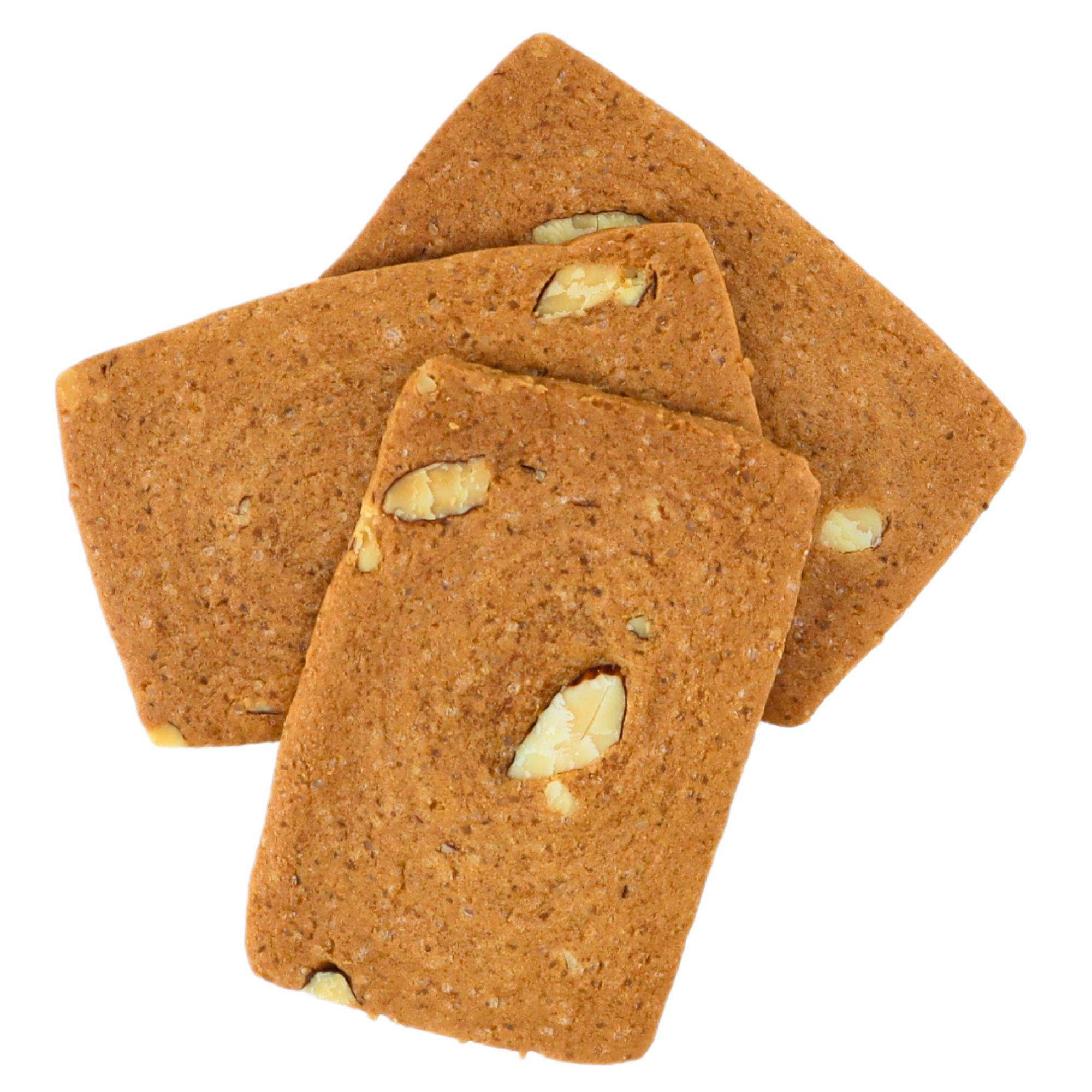 WEIZENMEHL, Zucker, 13% BUTTERREINFETT, 8% MANDELN, Backtriebmittel (Natriumbicarbonat, Ammoniumbicarbonat), SOJAMEHL, Salz, VOLLEIPULVER. Kann Spuren von Erdnüssen enthalten. |