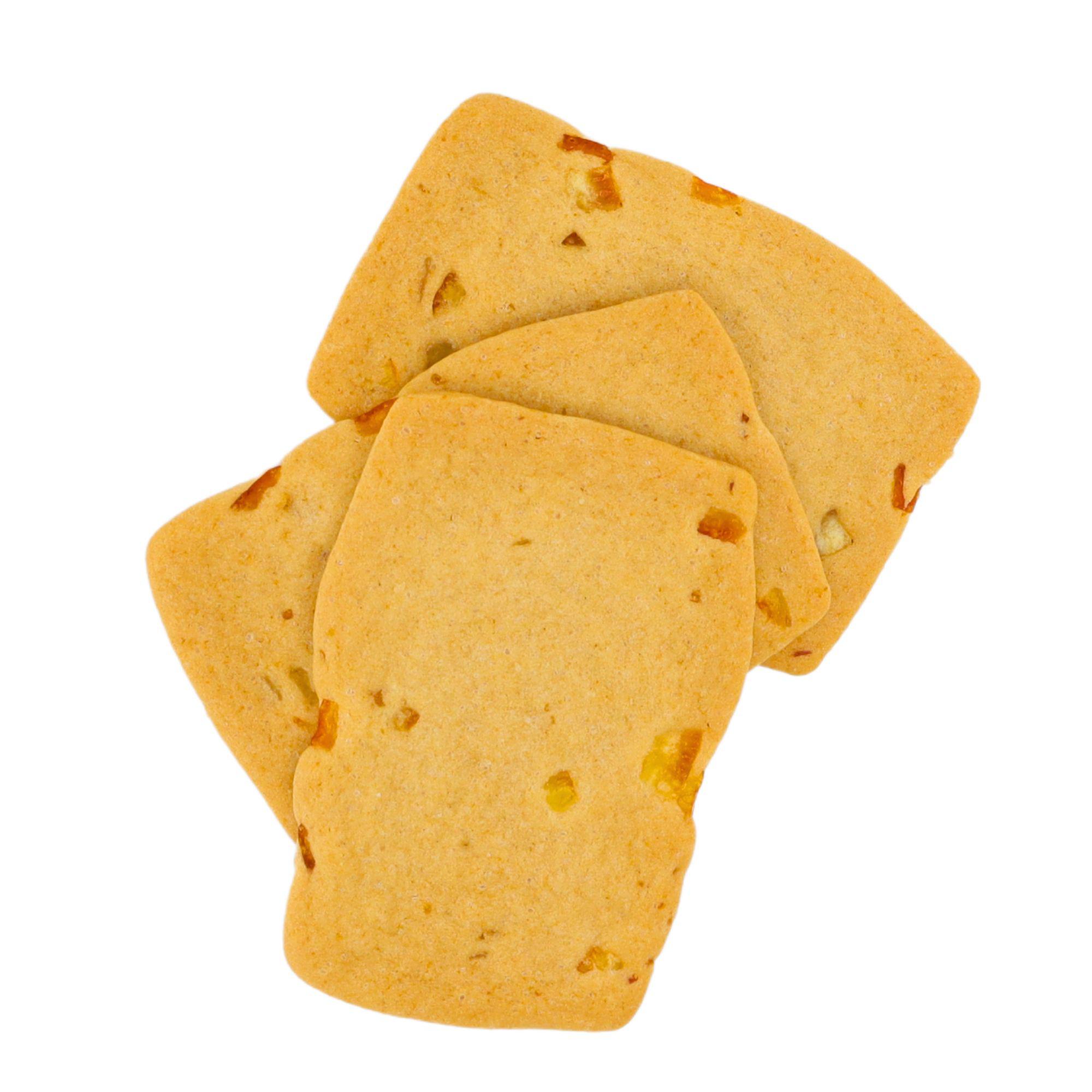 WEIZENMEHL, Zucker, 15% BUTTERREINFETT, 8% Orangenschalen (Orangenschalen, Maissirup, Zucker, Säuerungsmittel: Zitronensäure), Backtriebmittel: Natriumbicarbonat, Ammoniumbicarbonat, SOJAMEHL, Salz, 0,5% Orangenaroma, VOLLEIPULVER. Kann Spuren von Erdnüssen und Schalenfrüchten (Mandeln) enthalten. |