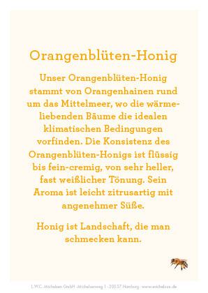 | Bezeichnung des Lebensmittels | Orangenblüten-Honig |