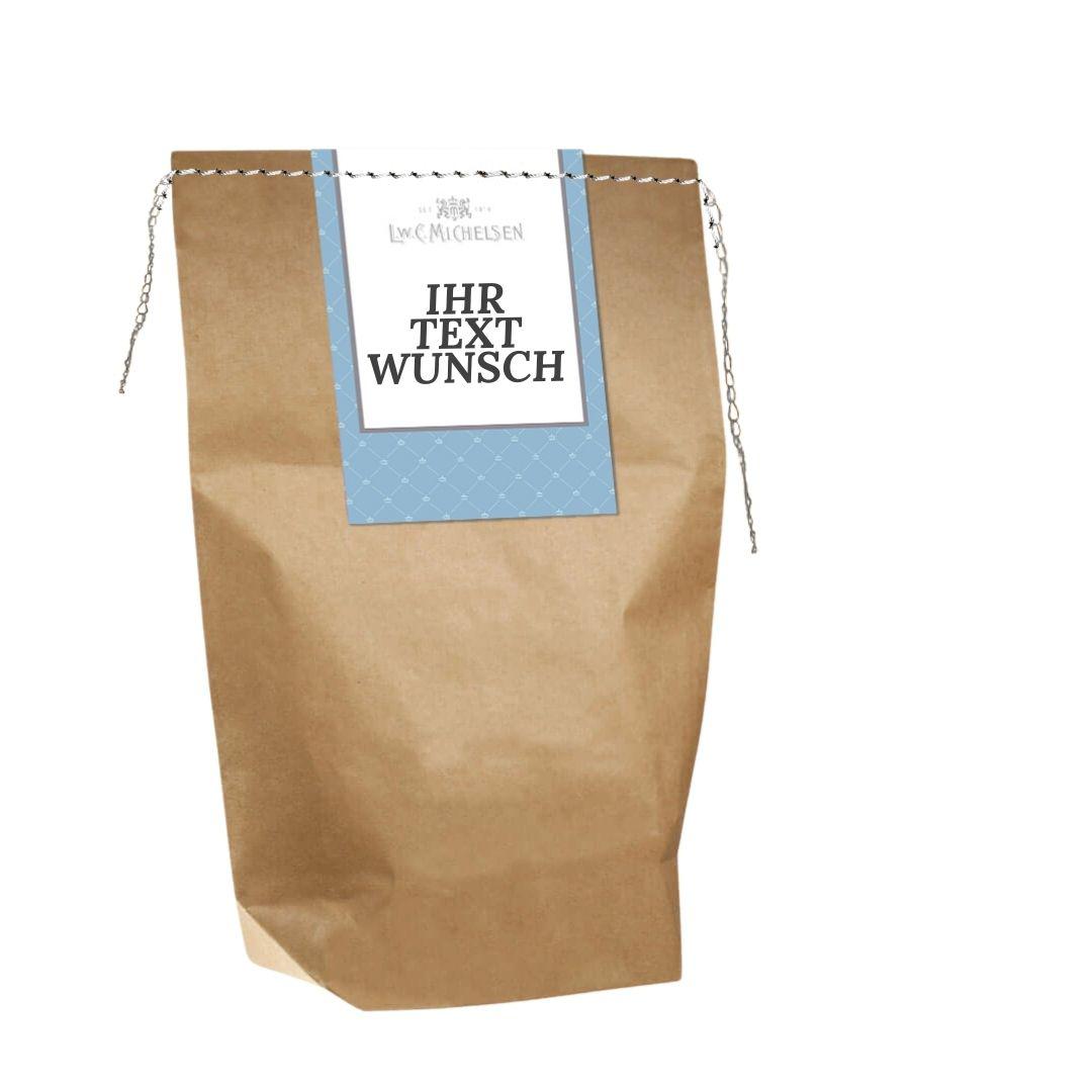 Persönliche Grußzeilen können in Schwarz oder Farbe eingedruckt werden, das stilvolle Logo bleibt immer als Zeichen für Qualität bestehen. Ein Geschenk, das nicht nur Genuss, sondern auch Nachhaltigkeit vermittelt.