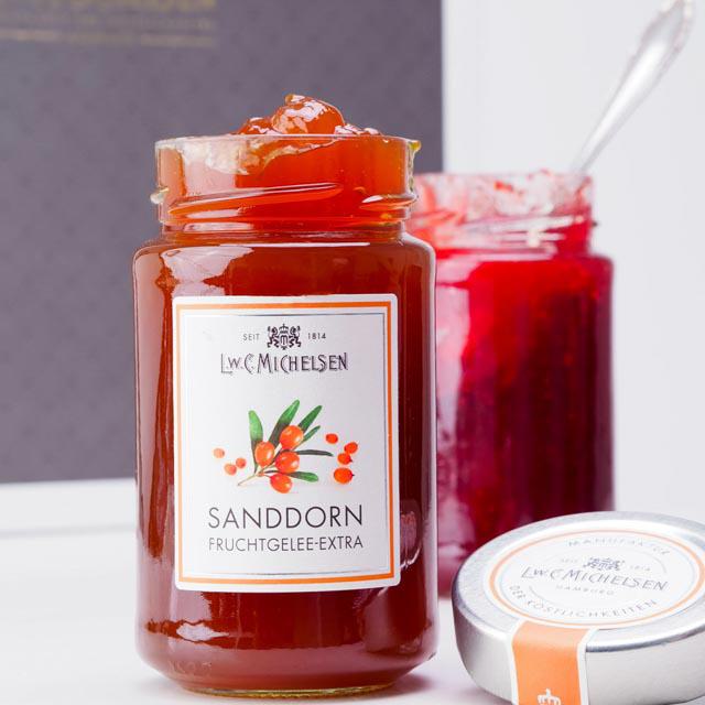 Seit 1814 verfeinern wir in Hamburg unsere einzigartige Rezeptur, die die Tradition unseres Hauses widerspiegelt. Ob als Brotaufstrich, zu Käse oder als besondere Zutat in Desserts und Saucen – unser Sanddorn-Gelee bereichert jede Mahlzeit.