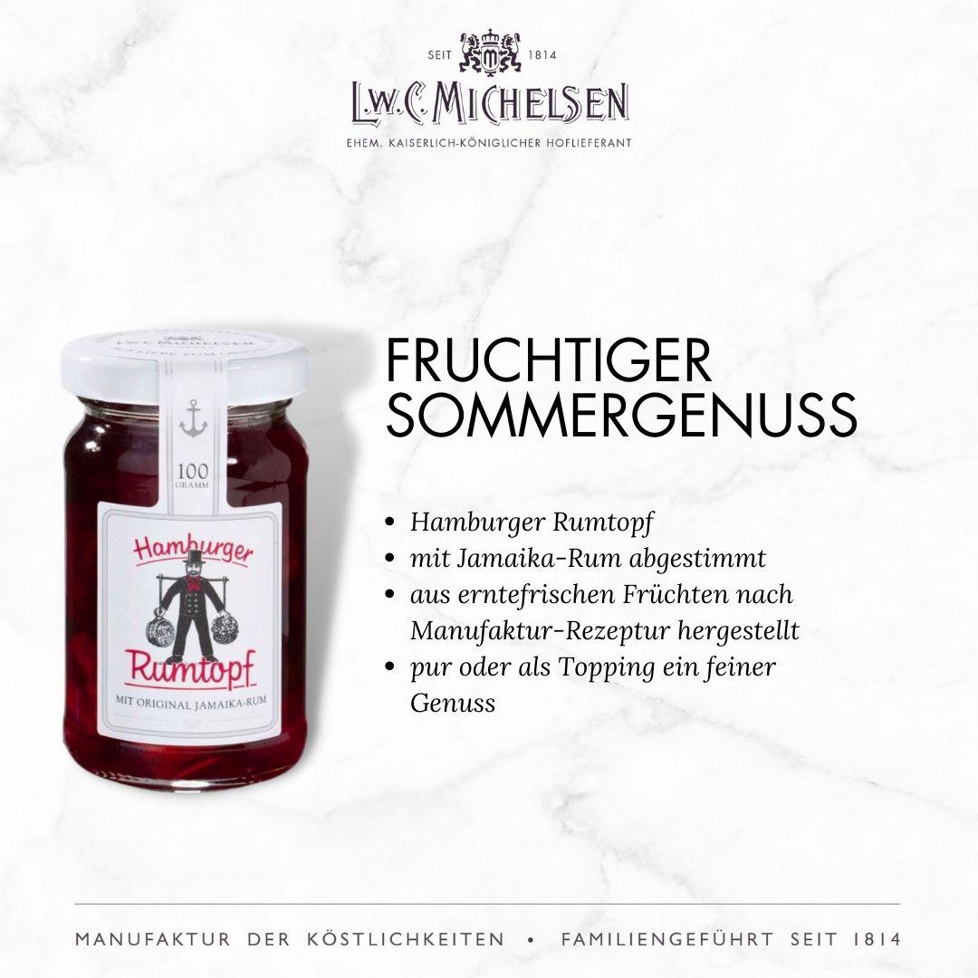 Mit einem breiten Sortiment an exquisiten Feinkostprodukten, Marmeladen, Honigen, Likören und Delikatessen aus aller Welt begeistert L.W.C. Michelsen Feinschmecker, Gourmets und Genießer gleichermaßen. Die Marke steht für traditionelle Rezepturen, hochwertige Zutaten und innovative Geschmackskompositionen, die immer wieder überraschen und Freude bereiten. Auch heute noch werden viele Produkte nach originalen Rezepturen hergestellt – sorgfältig und mit Liebe zum Detail.