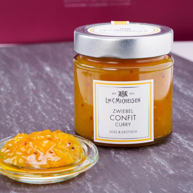Unser Zwiebel Confit mit Curry von L.W.C. Michelsen ist ein wahres Meisterwerk der Feinkost. Die süße Note karamellisierter Zwiebeln trifft auf die exotische Würze von Curry und schafft ein unvergleichliches Geschmackserlebnis. Ob zu Fleisch, Raclette, Fondue oder Gegrilltem – dieses Confit ist ein vielseitiger Begleiter, der jedes Gericht veredelt. Auch auf Baguette, Flammkuchen oder Käse sorgt es für besondere Genussmomente.